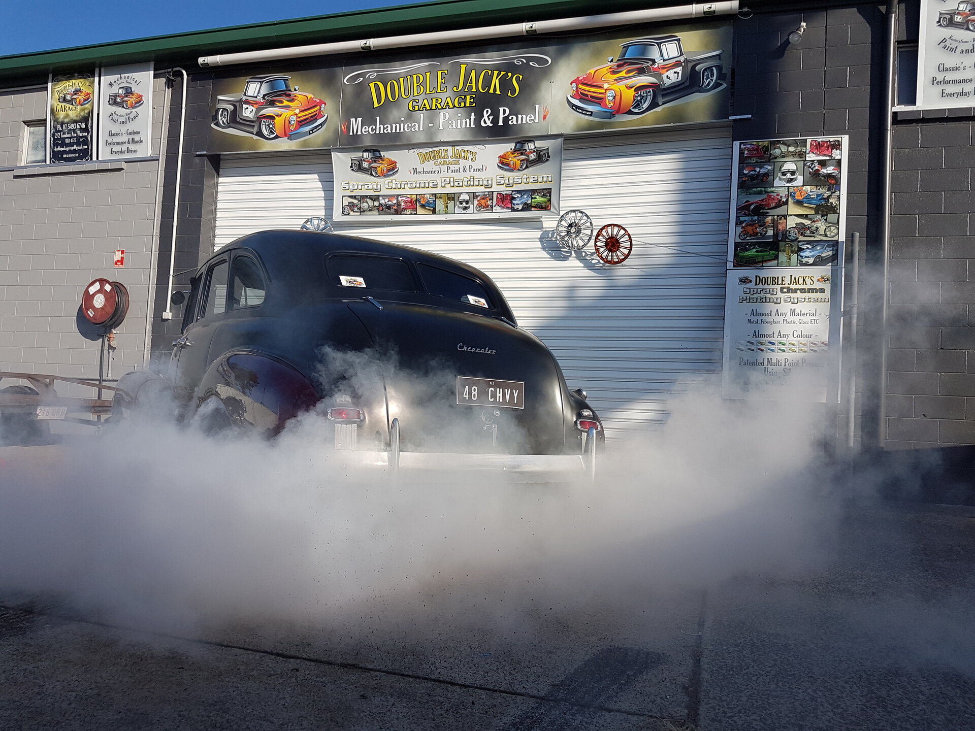 Below are pictures of the 56 chevy restoration underway, every nut, bolt, part and component has been removed, replaced with new or upgraded and if it was not available it was marticulously restored or remanufactured to better than new, many, many 100's of hours has been spent shaving and gapping, pre-assembling every component before painting and final fitting on this high end show quality classic, it will be a brand new, 60 year old chevy when done, nothing has been spared, it has also had a right hand drive conversion, 9' diff, brand new custom built 383 stroker chev engine, elderbrock performer alloy heads with genuine crower trumpeted fuel injection that should push around 550hp, T400 gearbox, air-conditioning, power steering, disc brakes and electric windows fitted for comfort and a bit of modernisation, we have also fitted a Dakota dash to this beauty, just to name a few of the many upgrades this classic 56 chevy has had so far